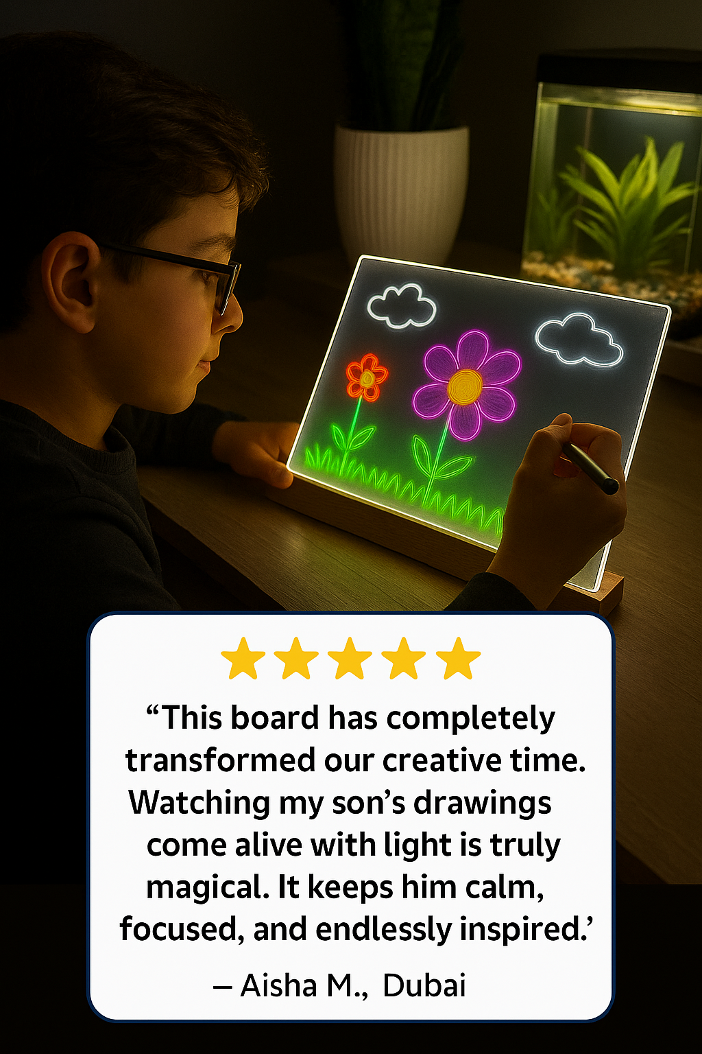 Watch your child’s simple drawings come to life with vibrant LED light, transforming each one into a glowing masterpiece.